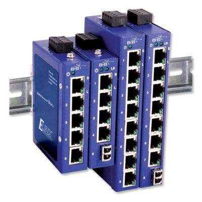 Designed to fit many applications, the ESW105 and ESW108 series are more than just an Ethernet switch with a great low pricing. They are plug-and-play industrial Ethernet Switches with an ultra compact IP30 DIN rail case, 6 way mountable panel brackets, LEDs for Power, (Link / Speed / Activity for each port), 12 to 36 VDC and 10 to 24 VAC power inputs with removable terminal blocks. These DIN-rail Ethernet switches are perfect for any applications that require special protection from hash environments.