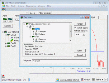 So, with a Microstar Laboratories user interface, DAP Measurement Studio (DAPstudio) or DAPview for Windows; with any industry-standard interface like DASYLab, LabVIEW, or VEE; or with a user interface you develop yourself, you select any DAP on your network as easily as you select a printer. You make the network transparent to your data acquisition application.
